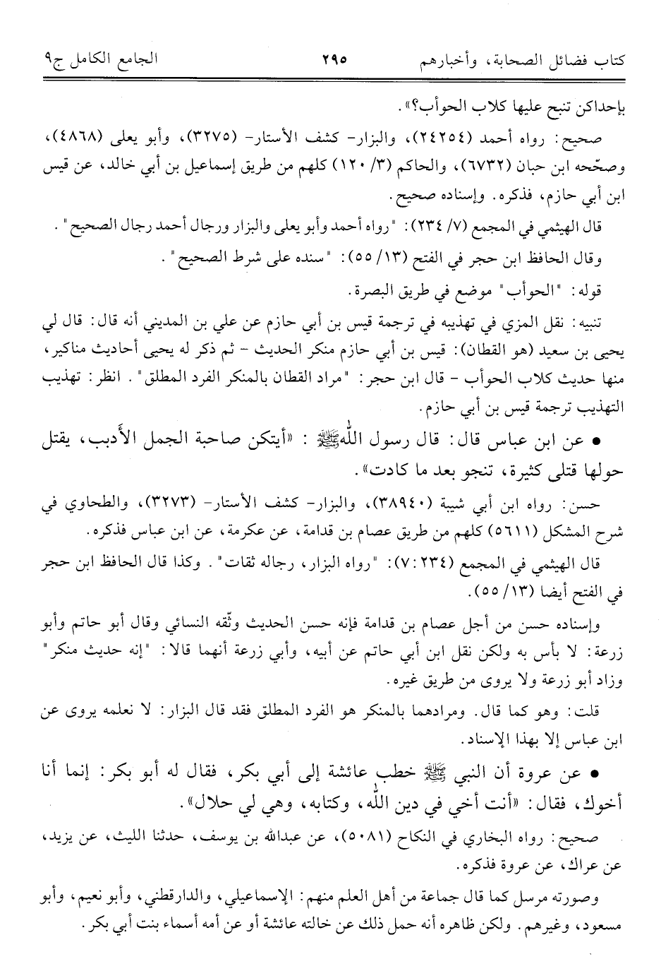 كتاب الجامع الكامل في الحديث الصحيح الشامل المرتب على أبواب الفقه (اسم الجزء: 9)