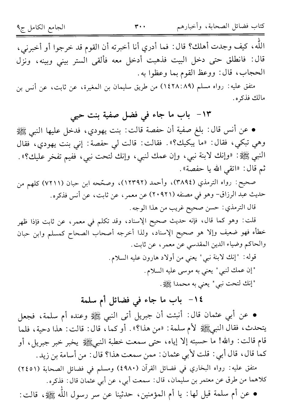 ١٣ - باب ما جاء في فضل صفية بنت حيي