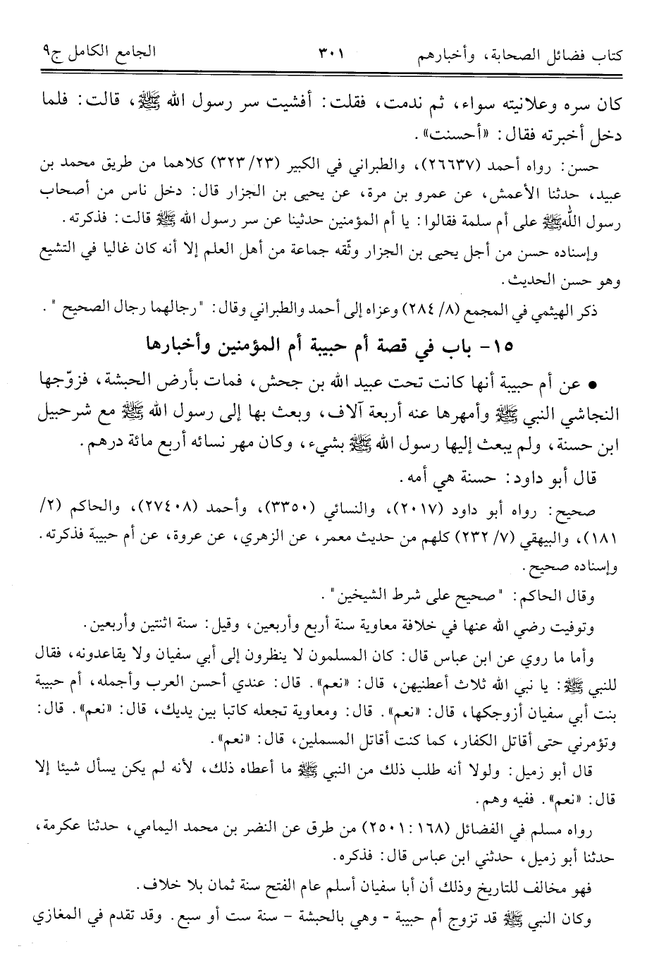 كتاب الجامع الكامل في الحديث الصحيح الشامل المرتب على أبواب الفقه (اسم الجزء: 9)