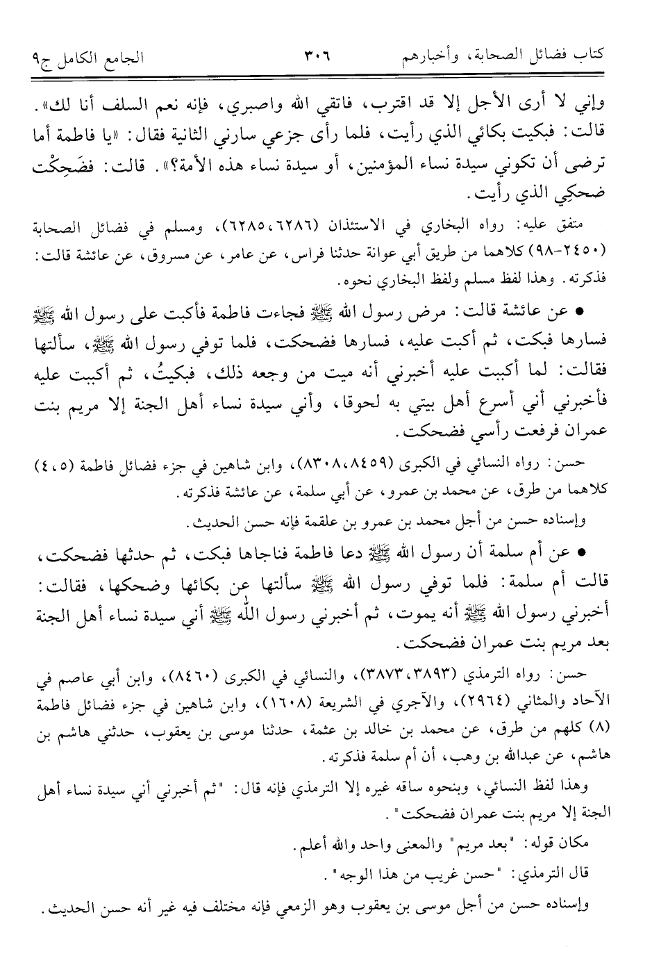 كتاب الجامع الكامل في الحديث الصحيح الشامل المرتب على أبواب الفقه (اسم الجزء: 9)