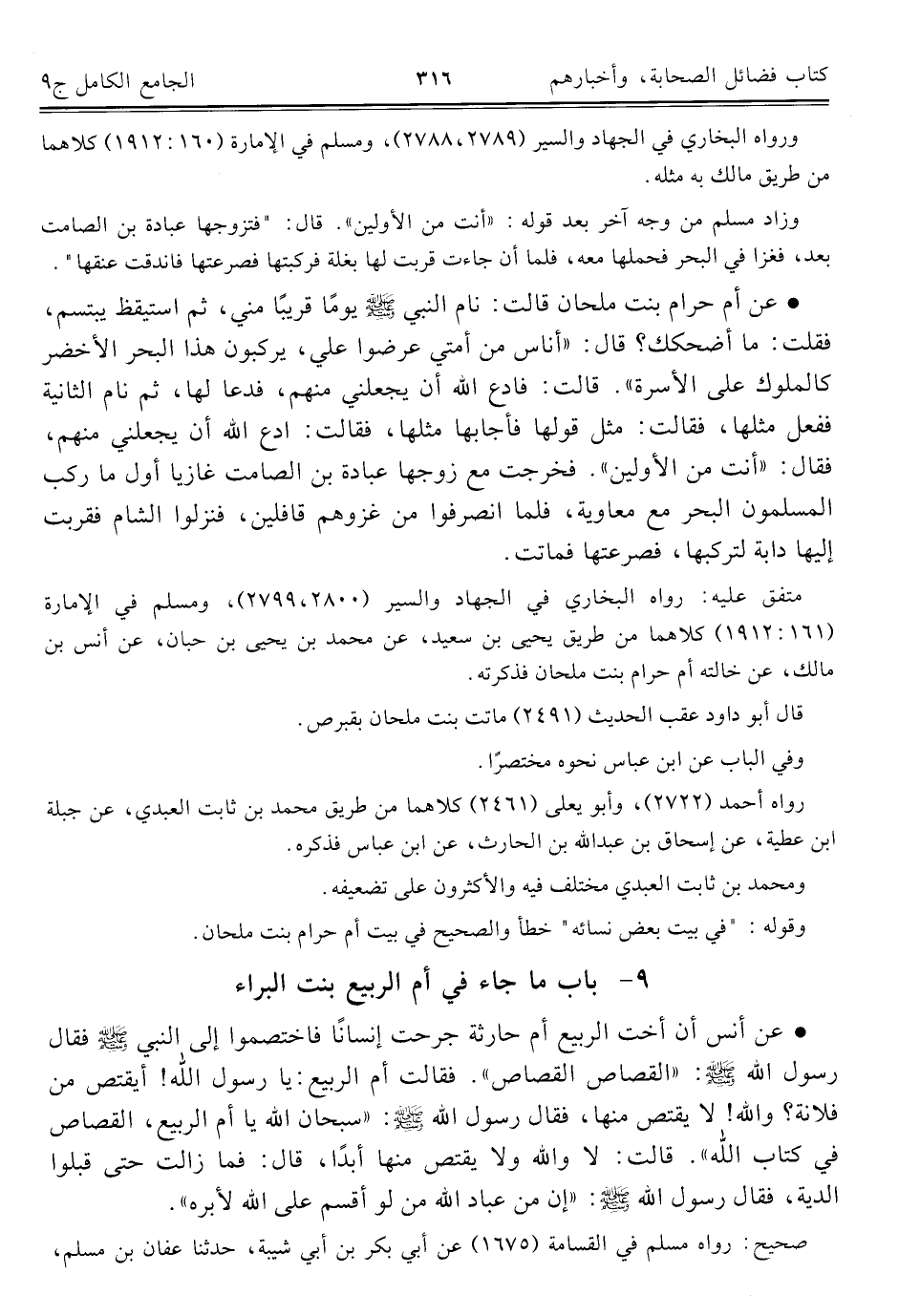 كتاب الجامع الكامل في الحديث الصحيح الشامل المرتب على أبواب الفقه (اسم الجزء: 9)