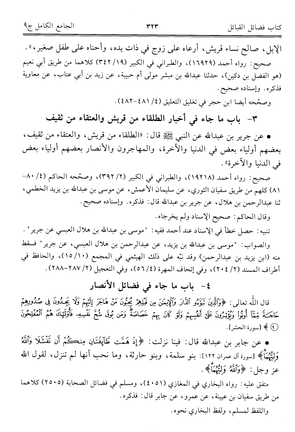 كتاب الجامع الكامل في الحديث الصحيح الشامل المرتب على أبواب الفقه (اسم الجزء: 9)