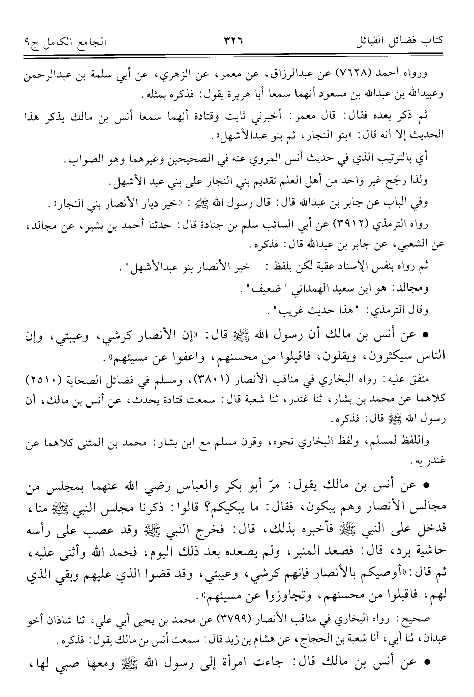 كتاب الجامع الكامل في الحديث الصحيح الشامل المرتب على أبواب الفقه (اسم الجزء: 9)
