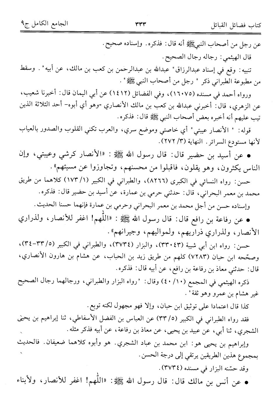 كتاب الجامع الكامل في الحديث الصحيح الشامل المرتب على أبواب الفقه (اسم الجزء: 9)