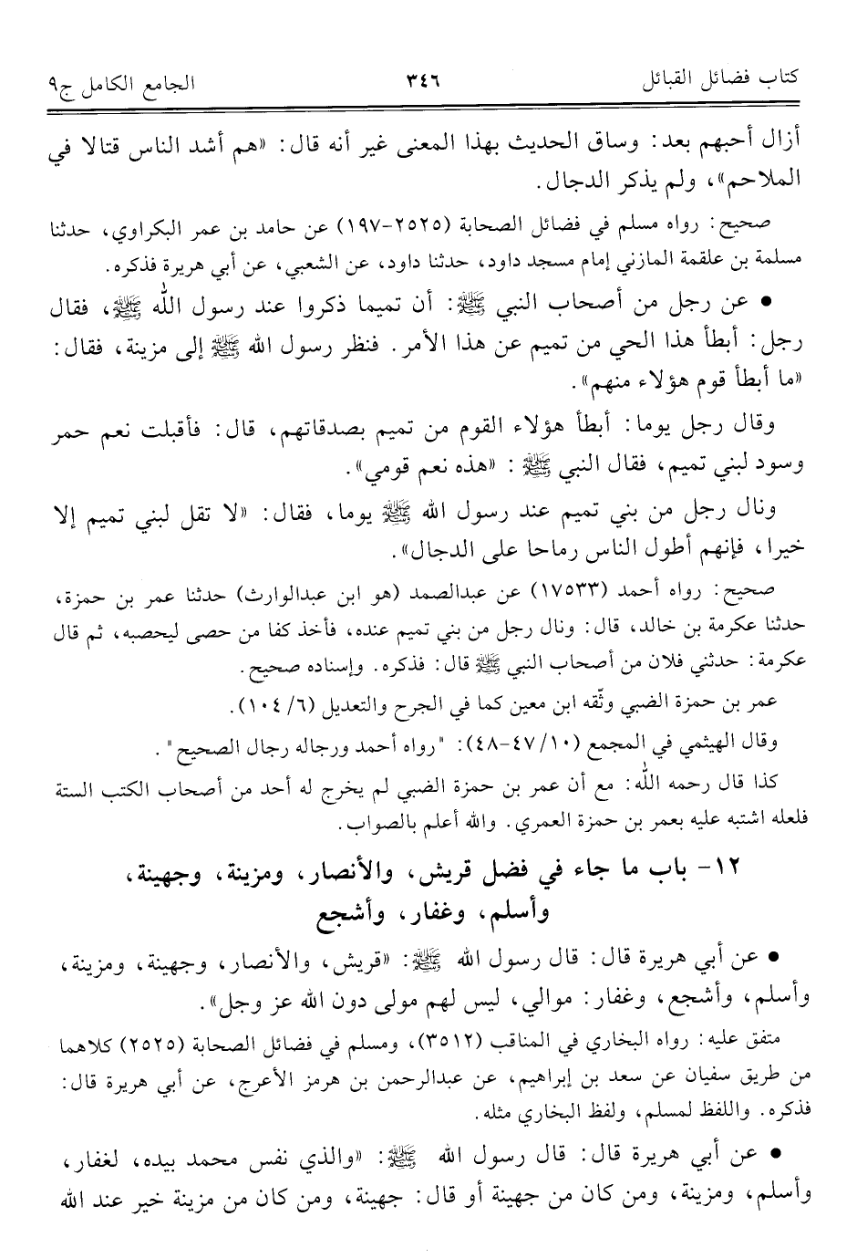 كتاب الجامع الكامل في الحديث الصحيح الشامل المرتب على أبواب الفقه (اسم الجزء: 9)