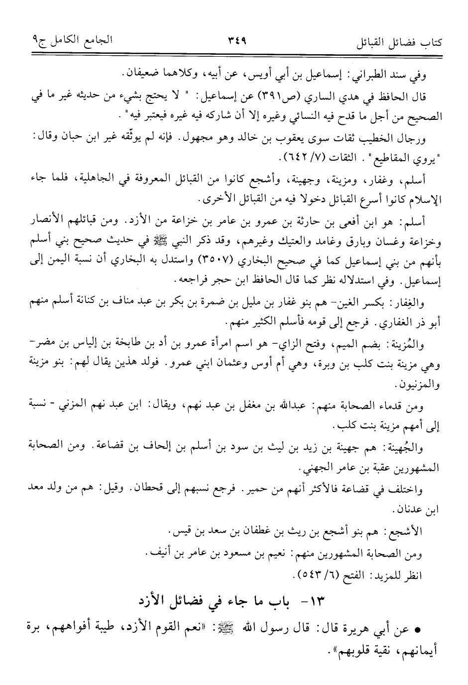 ١٣ - باب ما جاء في فضائل الأزد