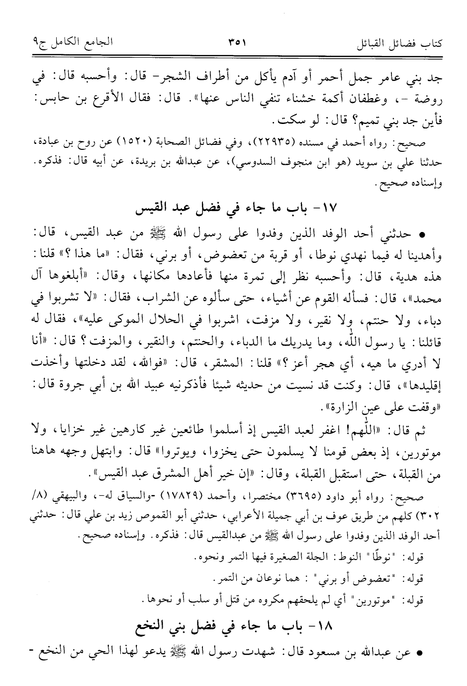 كتاب الجامع الكامل في الحديث الصحيح الشامل المرتب على أبواب الفقه (اسم الجزء: 9)