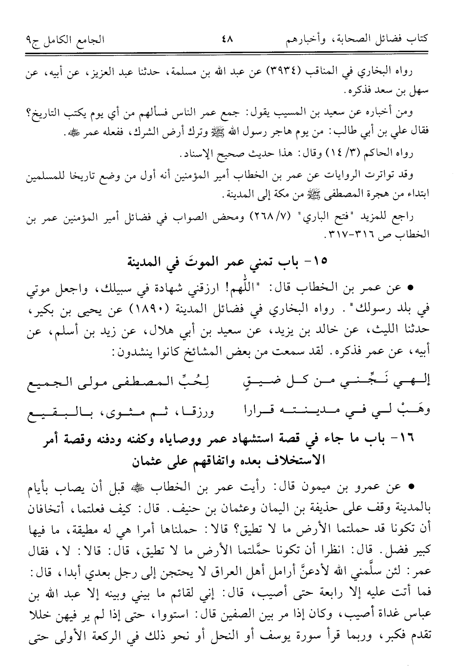 راجع للمزيد "فتح الباري" (٧/ ٢٦٨) ومحض الصواب في فضائل أمير المؤمنين عمر بن الخطاب ص ٣١٦ - ٣١٧.