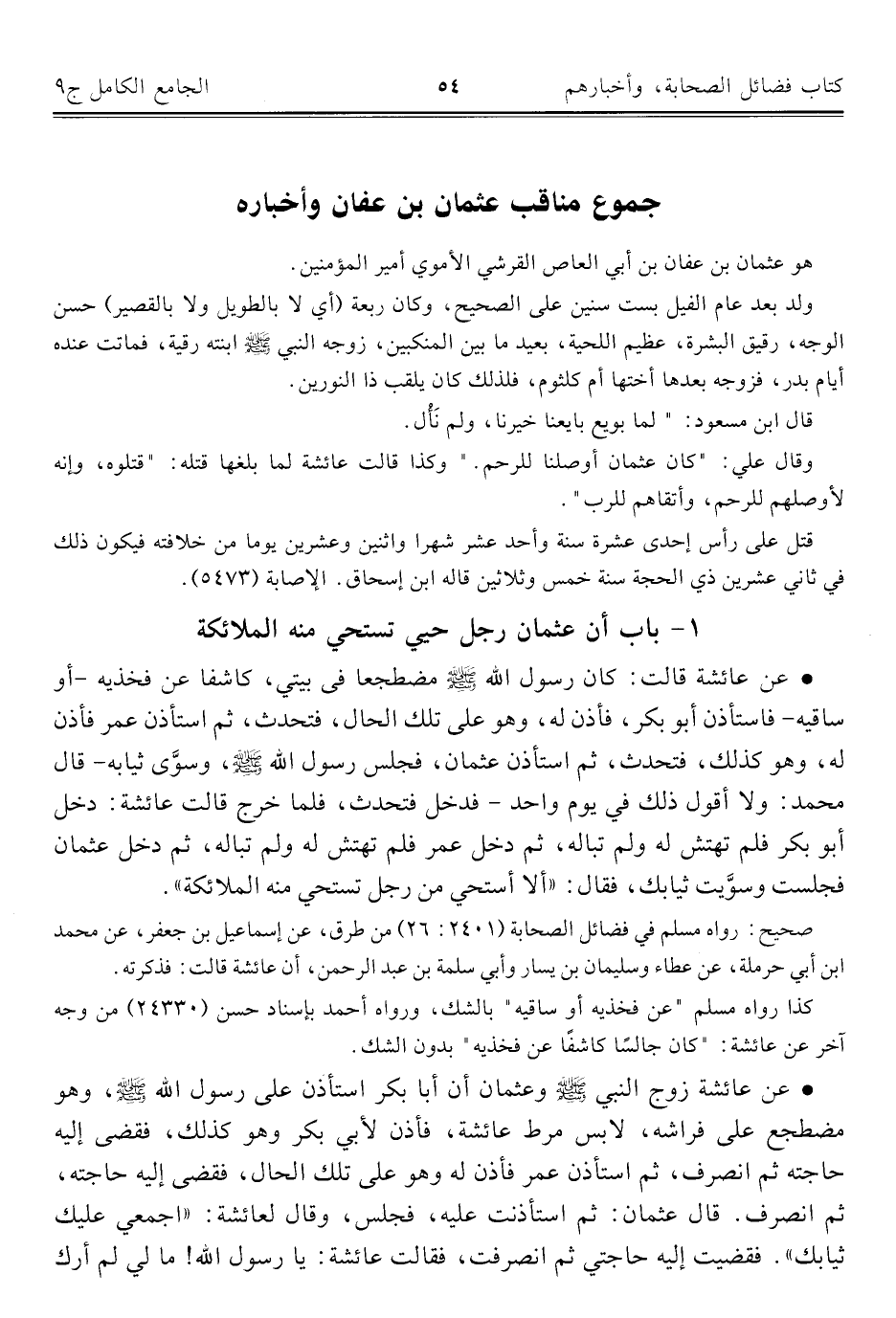 ١ - باب أن عثمان رجل حيي تستحي منه الملائكة
