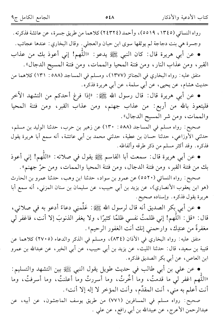 كتاب الجامع الكامل في الحديث الصحيح الشامل المرتب على أبواب الفقه (اسم الجزء: 9)