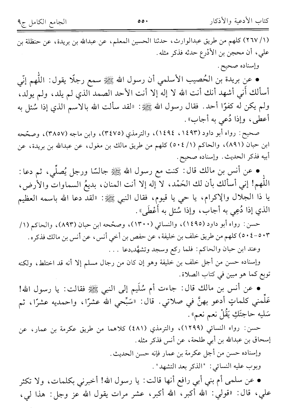 كتاب الجامع الكامل في الحديث الصحيح الشامل المرتب على أبواب الفقه (اسم الجزء: 9)