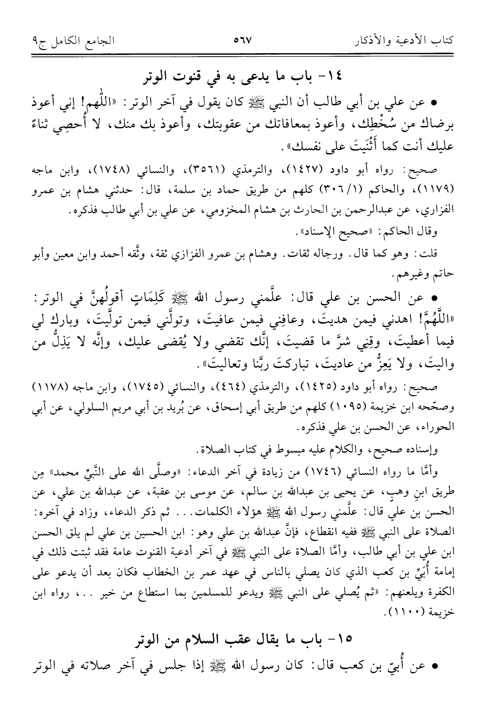 كتاب الجامع الكامل في الحديث الصحيح الشامل المرتب على أبواب الفقه (اسم الجزء: 9)