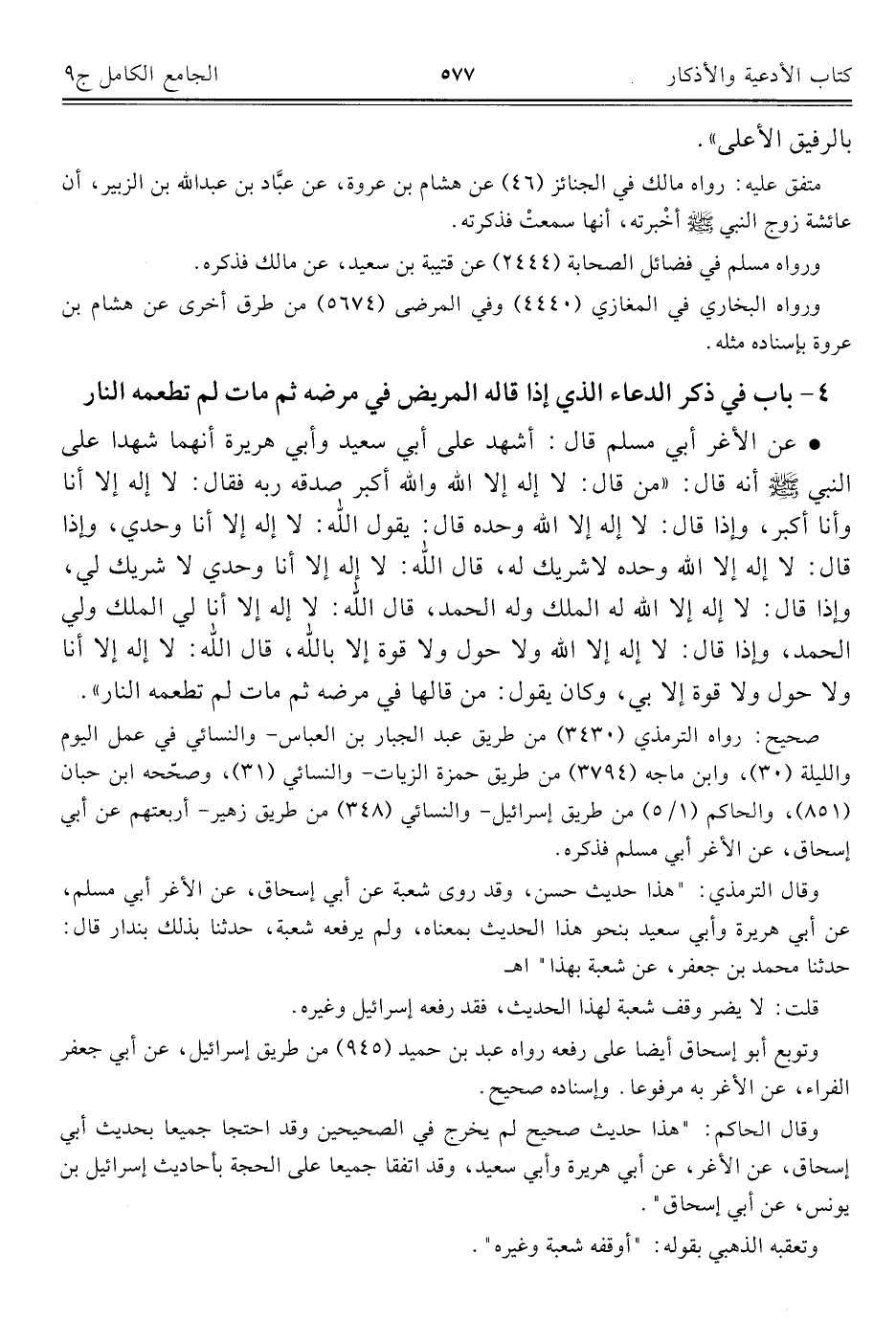 كتاب الجامع الكامل في الحديث الصحيح الشامل المرتب على أبواب الفقه (اسم الجزء: 9)