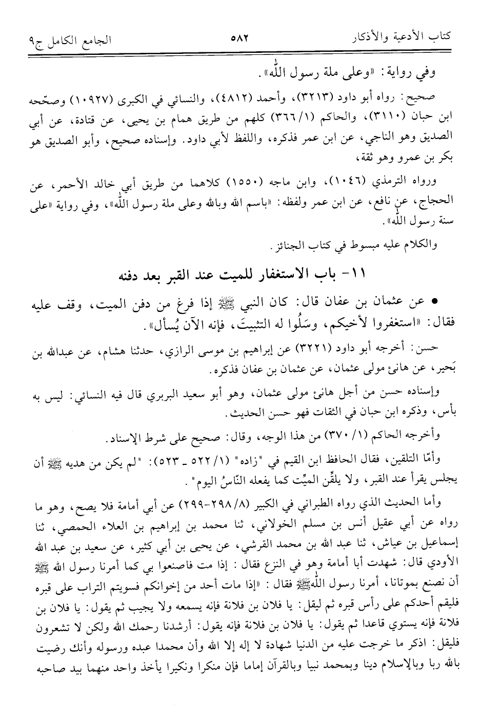 كتاب الجامع الكامل في الحديث الصحيح الشامل المرتب على أبواب الفقه (اسم الجزء: 9)