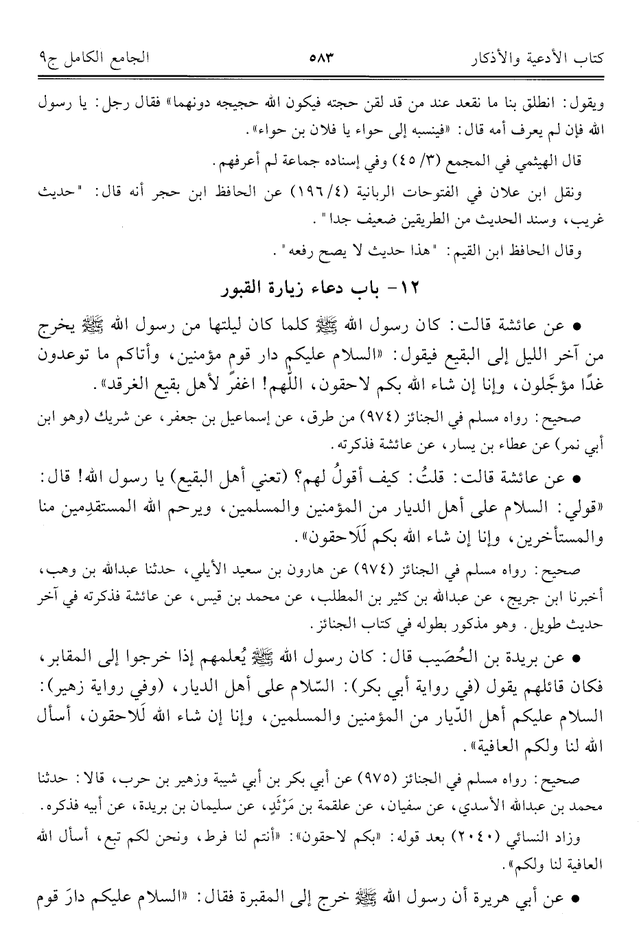كتاب الجامع الكامل في الحديث الصحيح الشامل المرتب على أبواب الفقه (اسم الجزء: 9)