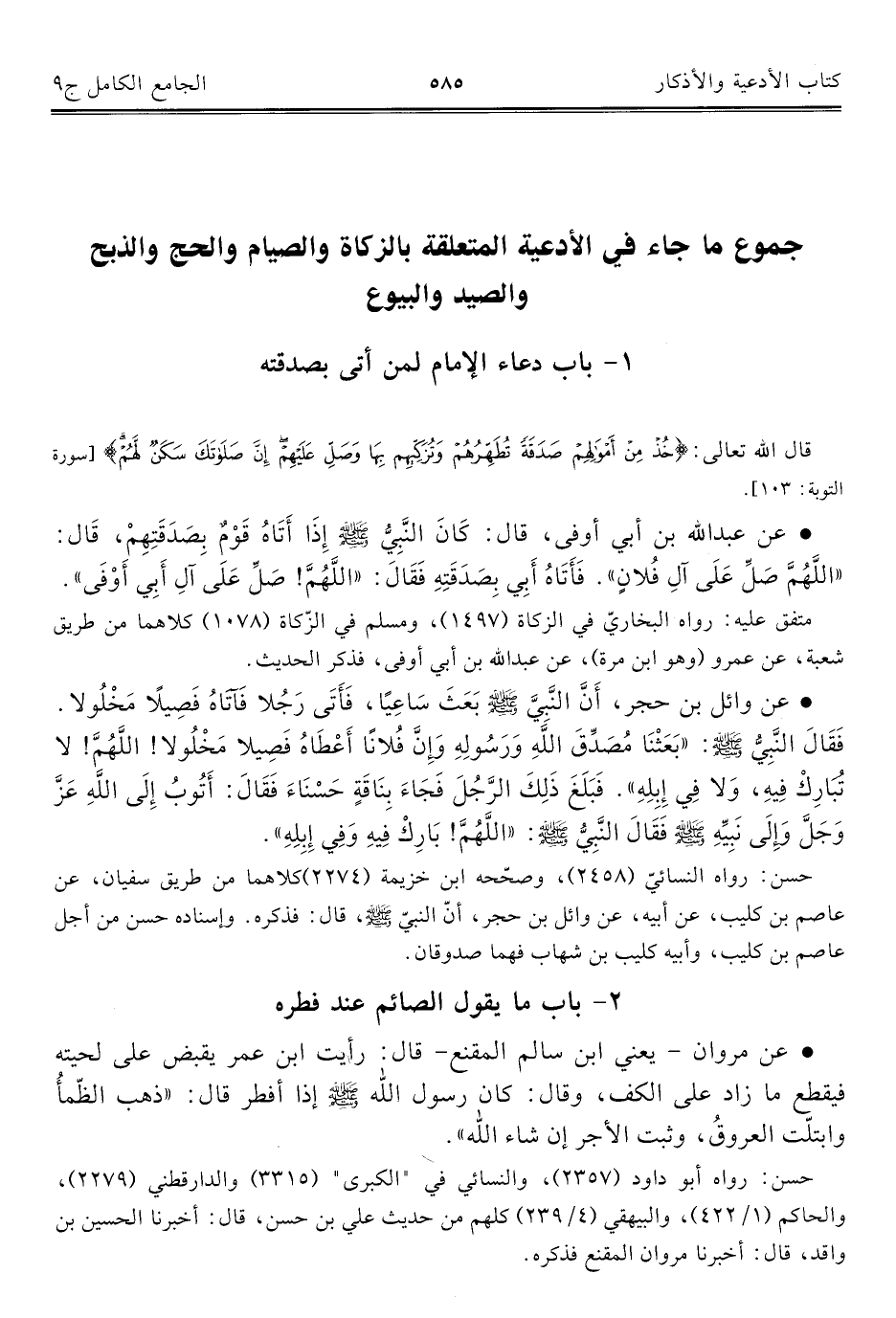 كتاب الجامع الكامل في الحديث الصحيح الشامل المرتب على أبواب الفقه (اسم الجزء: 9)
