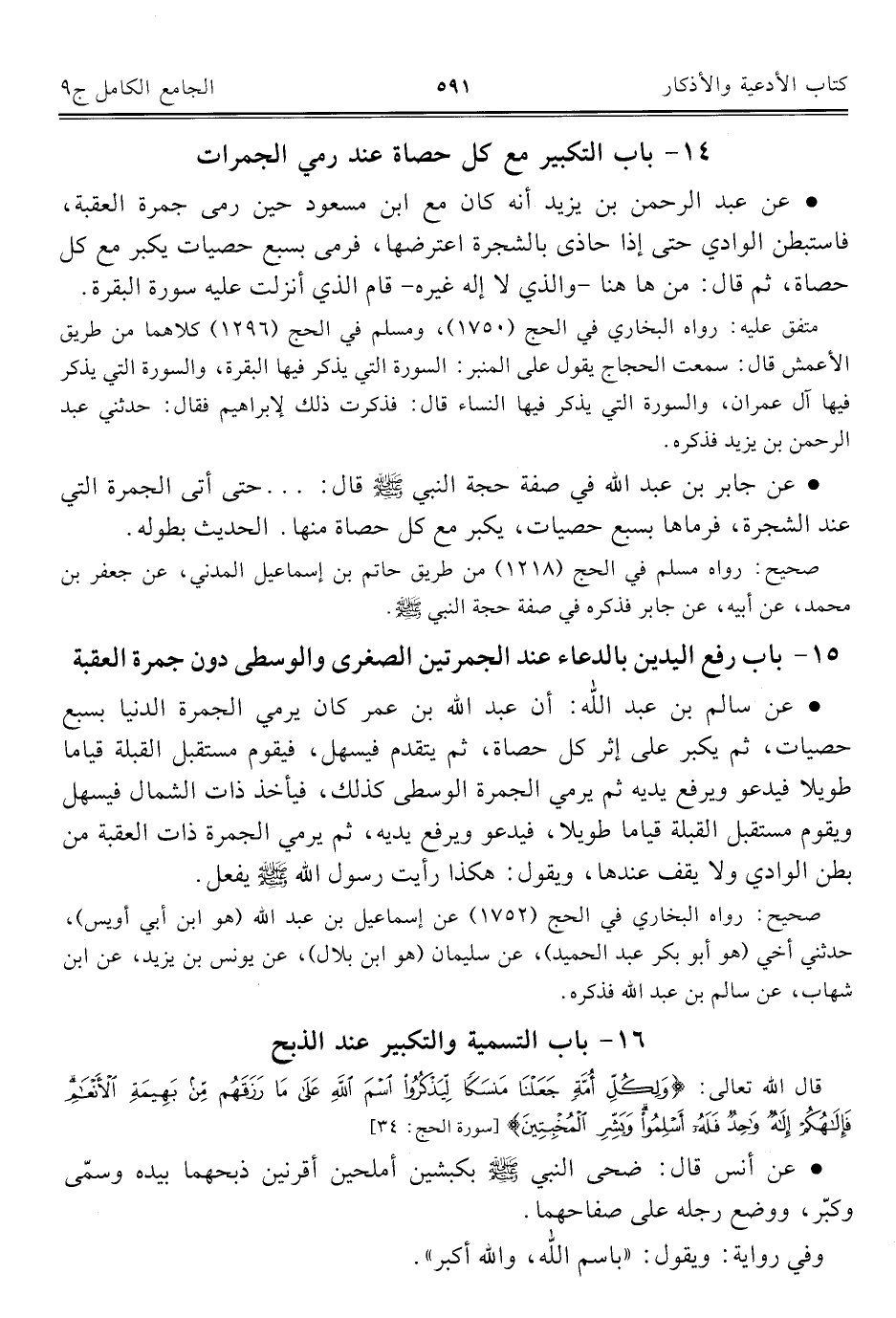 كتاب الجامع الكامل في الحديث الصحيح الشامل المرتب على أبواب الفقه (اسم الجزء: 9)