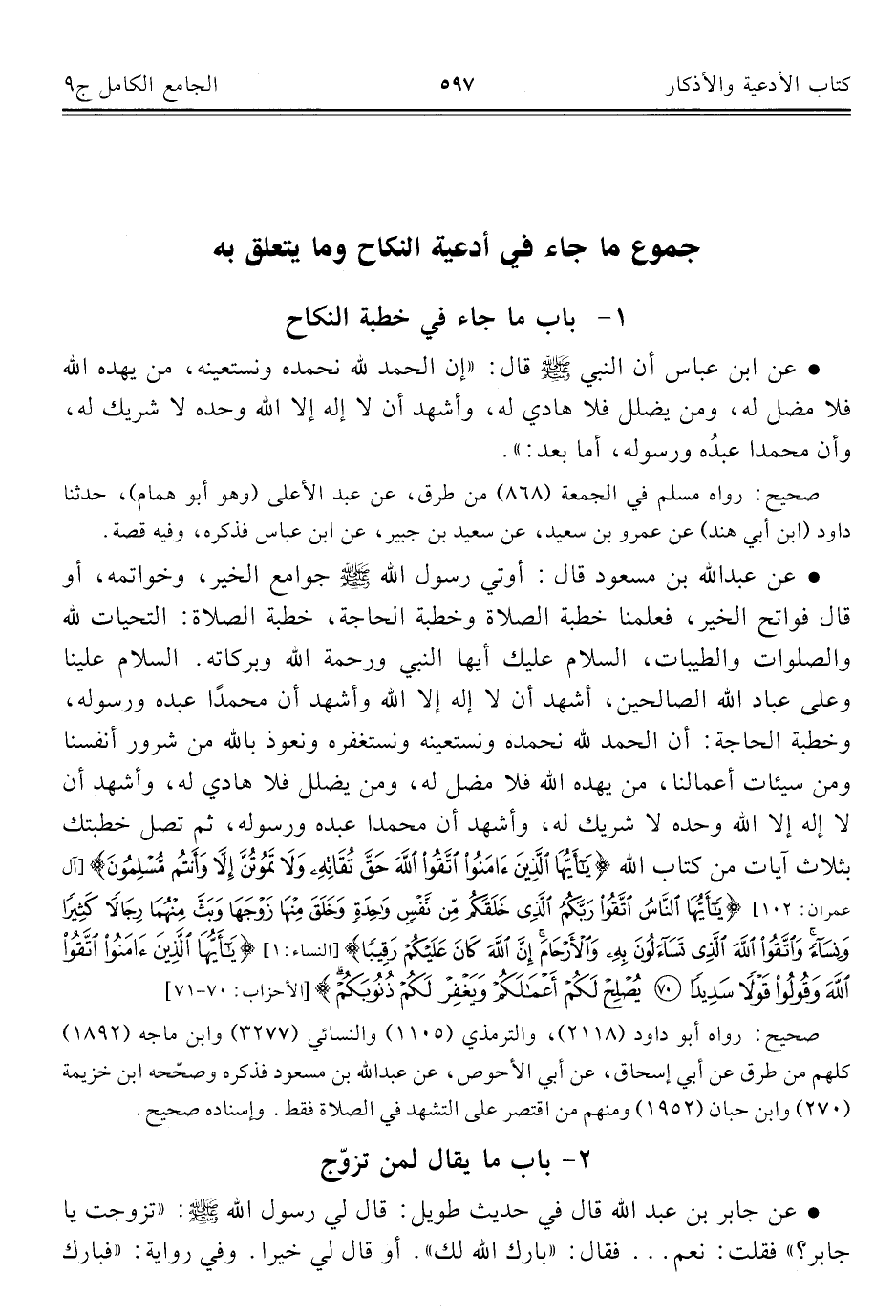 جموع ما جاء في أدعية النكاح وما يتعلق به
