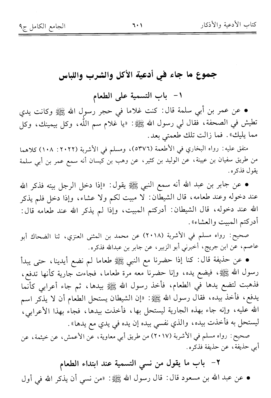 كتاب الجامع الكامل في الحديث الصحيح الشامل المرتب على أبواب الفقه (اسم الجزء: 9)