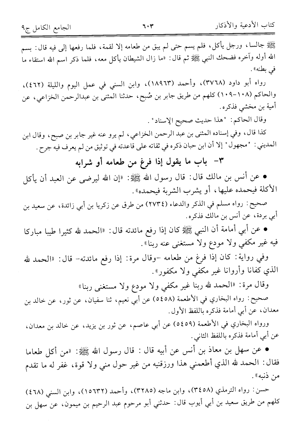 كتاب الجامع الكامل في الحديث الصحيح الشامل المرتب على أبواب الفقه (اسم الجزء: 9)