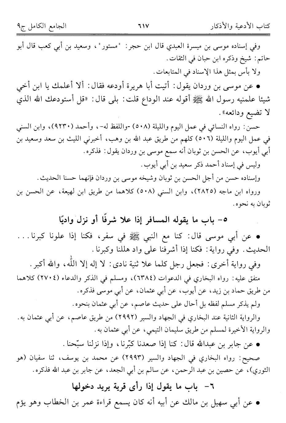 كتاب الجامع الكامل في الحديث الصحيح الشامل المرتب على أبواب الفقه (اسم الجزء: 9)