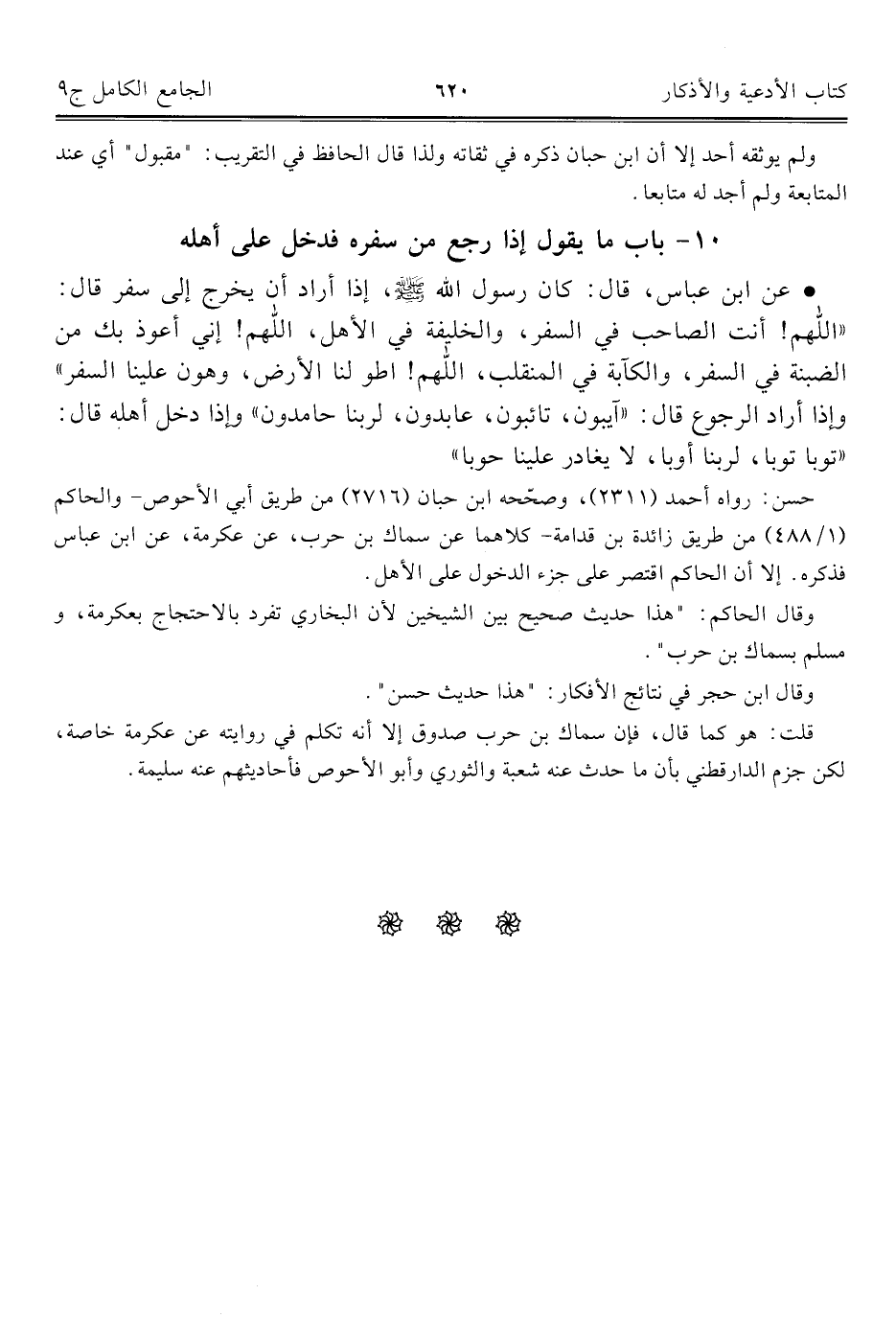 كتاب الجامع الكامل في الحديث الصحيح الشامل المرتب على أبواب الفقه (اسم الجزء: 9)