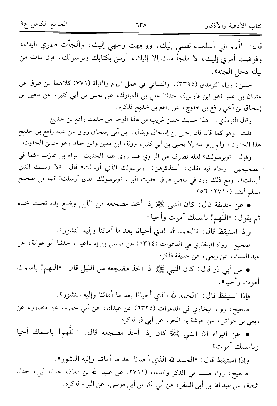 كتاب الجامع الكامل في الحديث الصحيح الشامل المرتب على أبواب الفقه (اسم الجزء: 9)