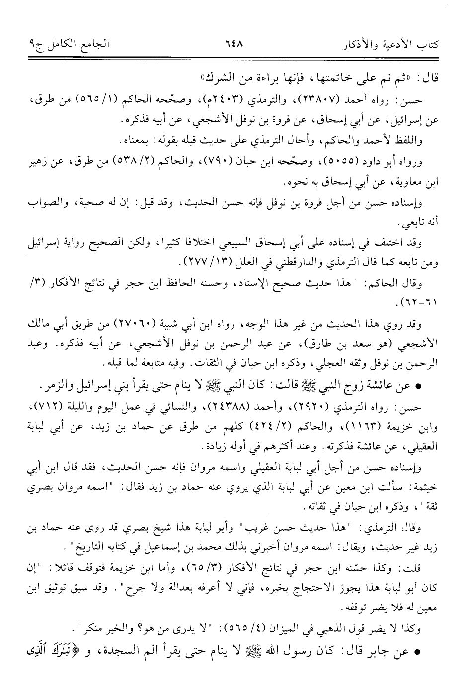 كتاب الجامع الكامل في الحديث الصحيح الشامل المرتب على أبواب الفقه (اسم الجزء: 9)