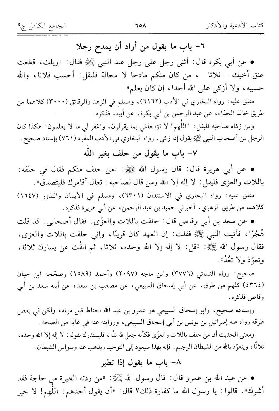 كتاب الجامع الكامل في الحديث الصحيح الشامل المرتب على أبواب الفقه (اسم الجزء: 9)