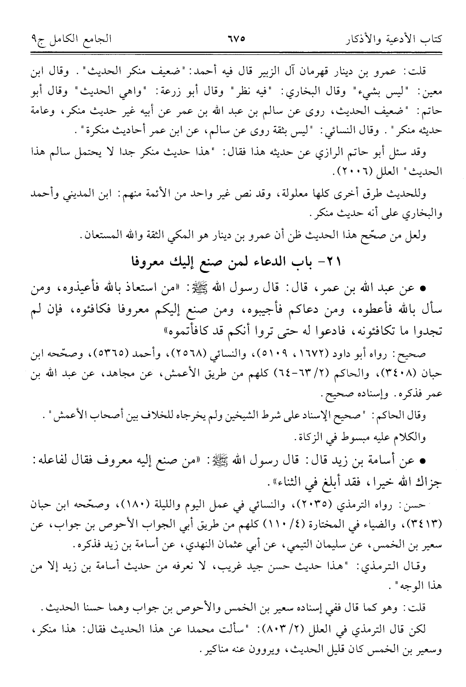 كتاب الجامع الكامل في الحديث الصحيح الشامل المرتب على أبواب الفقه (اسم الجزء: 9)