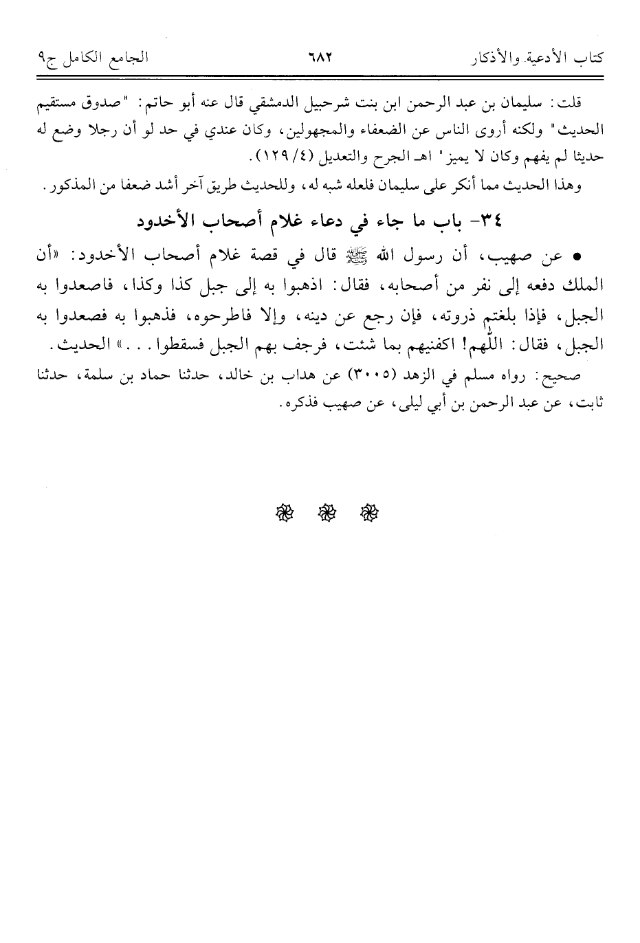 كتاب الجامع الكامل في الحديث الصحيح الشامل المرتب على أبواب الفقه (اسم الجزء: 9)