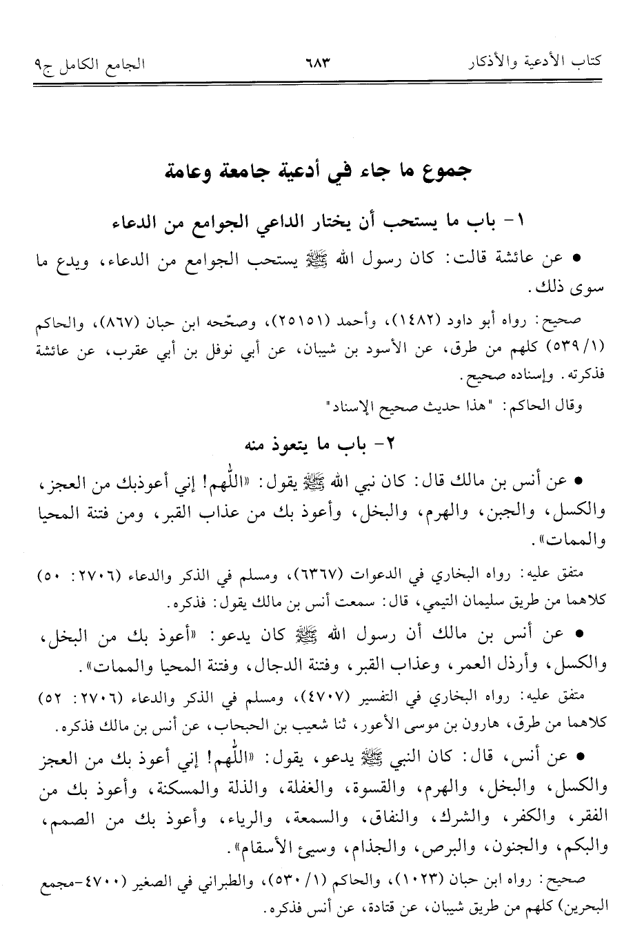 كتاب الجامع الكامل في الحديث الصحيح الشامل المرتب على أبواب الفقه (اسم الجزء: 9)