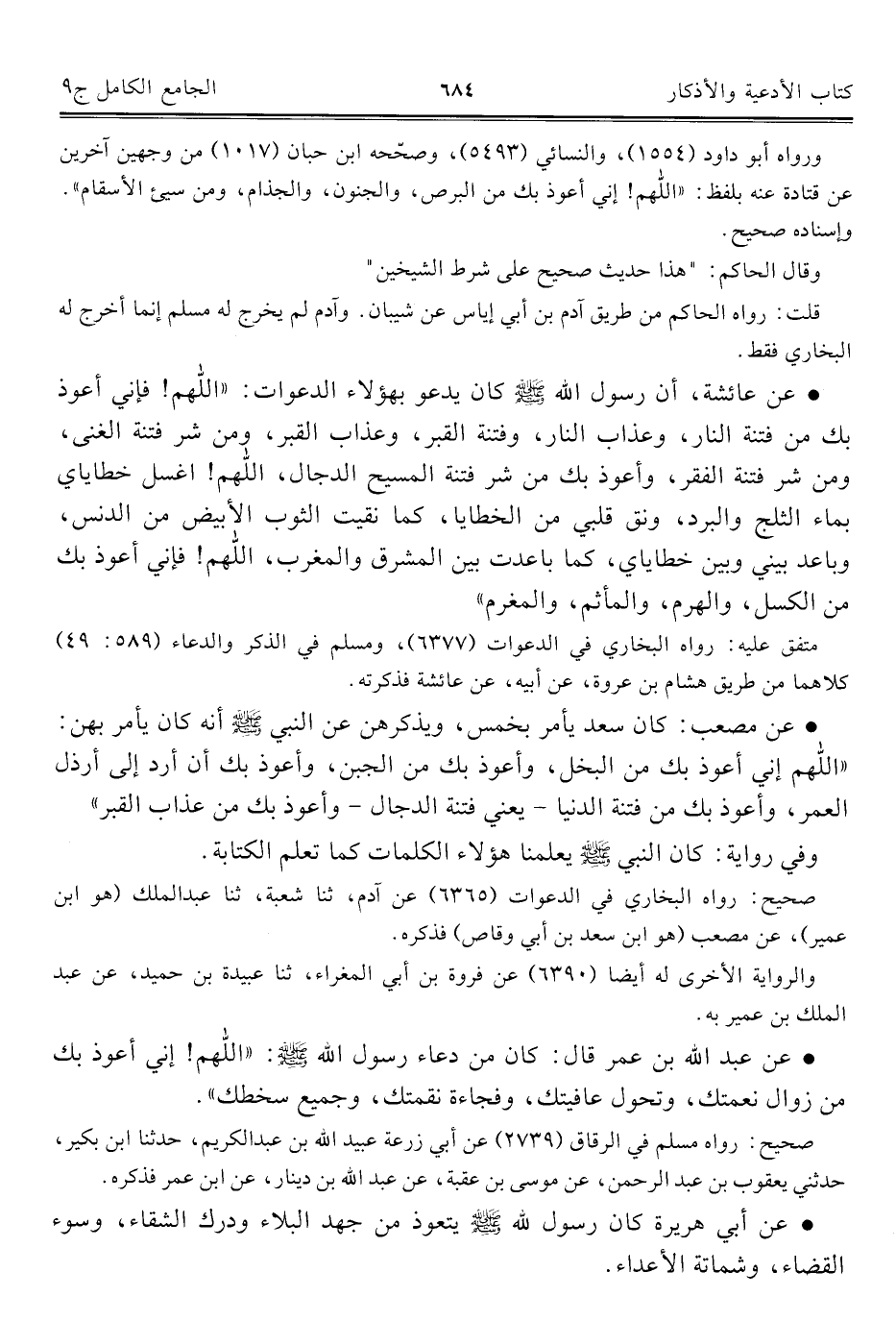 كتاب الجامع الكامل في الحديث الصحيح الشامل المرتب على أبواب الفقه (اسم الجزء: 9)