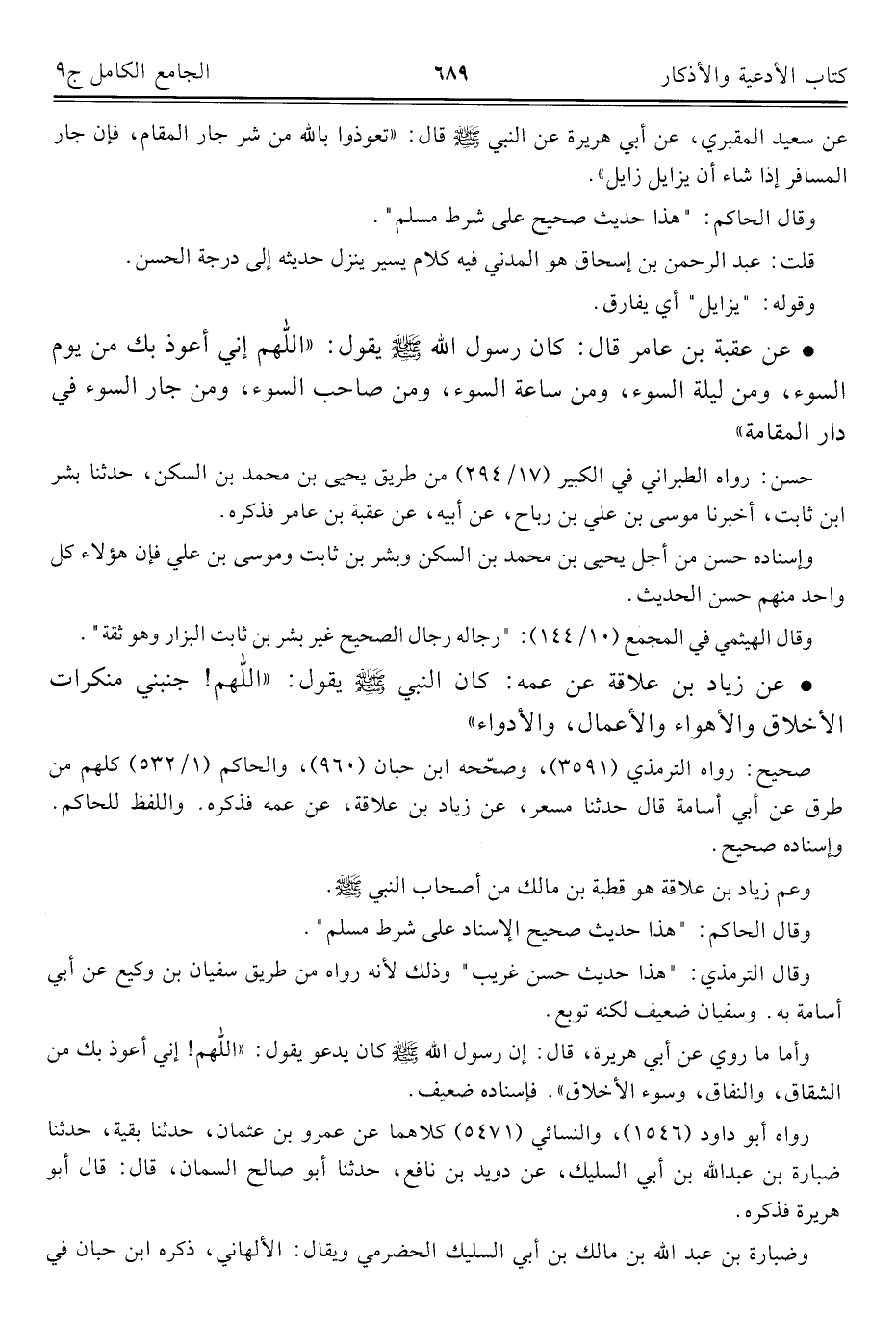 • عن زياد بن علاقة عن عمه: كان النبي - صلى الله عليه وسلم - يقول: "اللهم! جنبني منكرات الأخلاق والأهواء والأعمال، والأدواء".