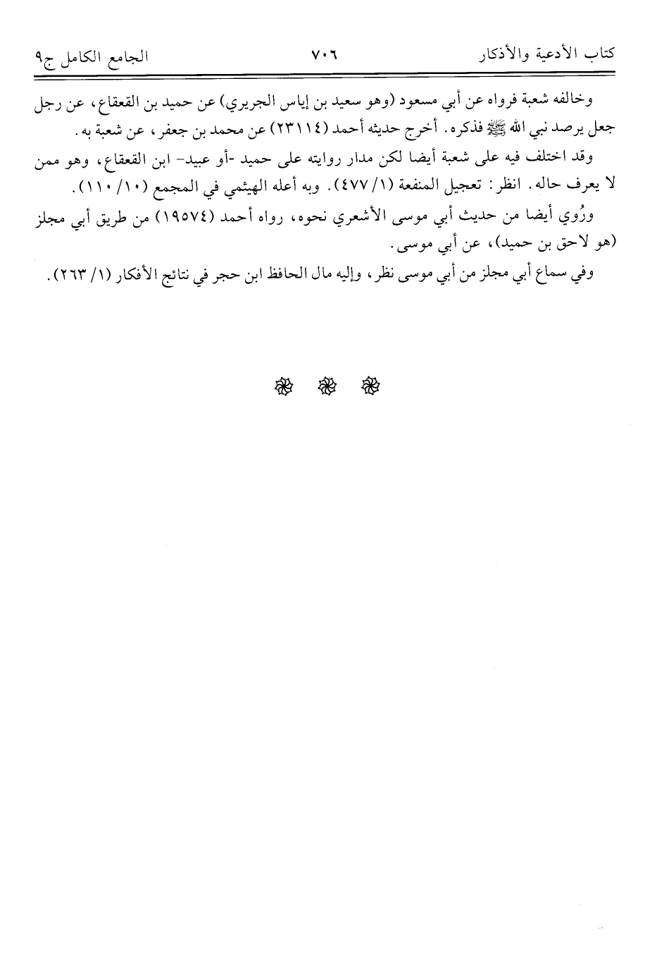 كتاب الجامع الكامل في الحديث الصحيح الشامل المرتب على أبواب الفقه (اسم الجزء: 9)
