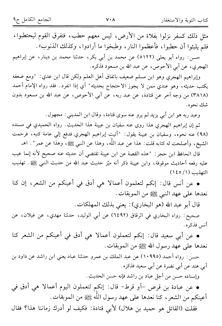كتاب الجامع الكامل في الحديث الصحيح الشامل المرتب على أبواب الفقه (اسم الجزء: 9)