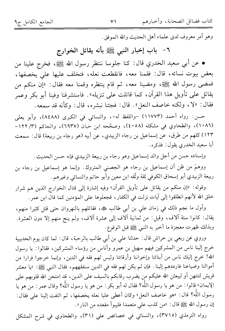 كتاب الجامع الكامل في الحديث الصحيح الشامل المرتب على أبواب الفقه (اسم الجزء: 9)