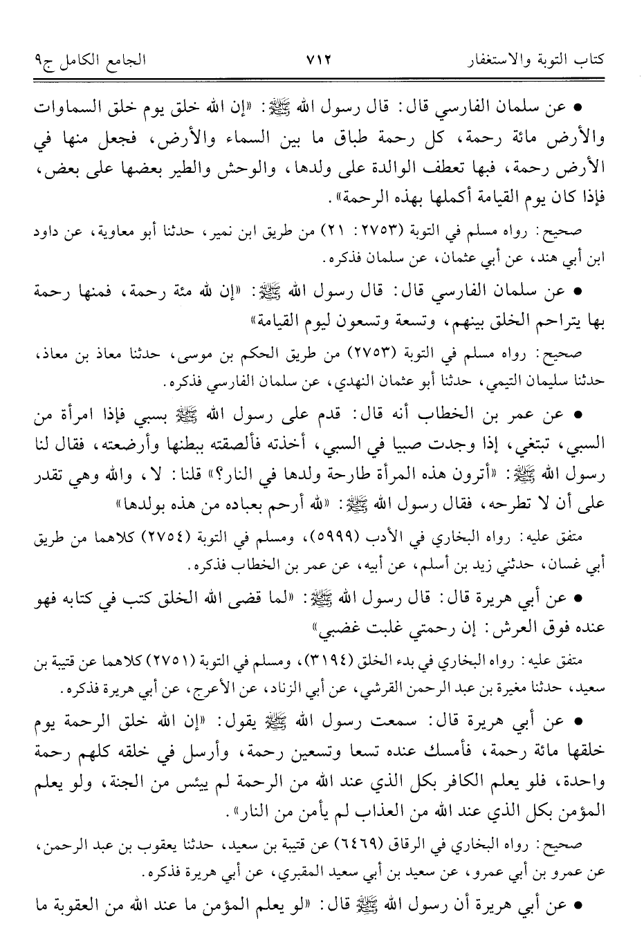 كتاب الجامع الكامل في الحديث الصحيح الشامل المرتب على أبواب الفقه (اسم الجزء: 9)