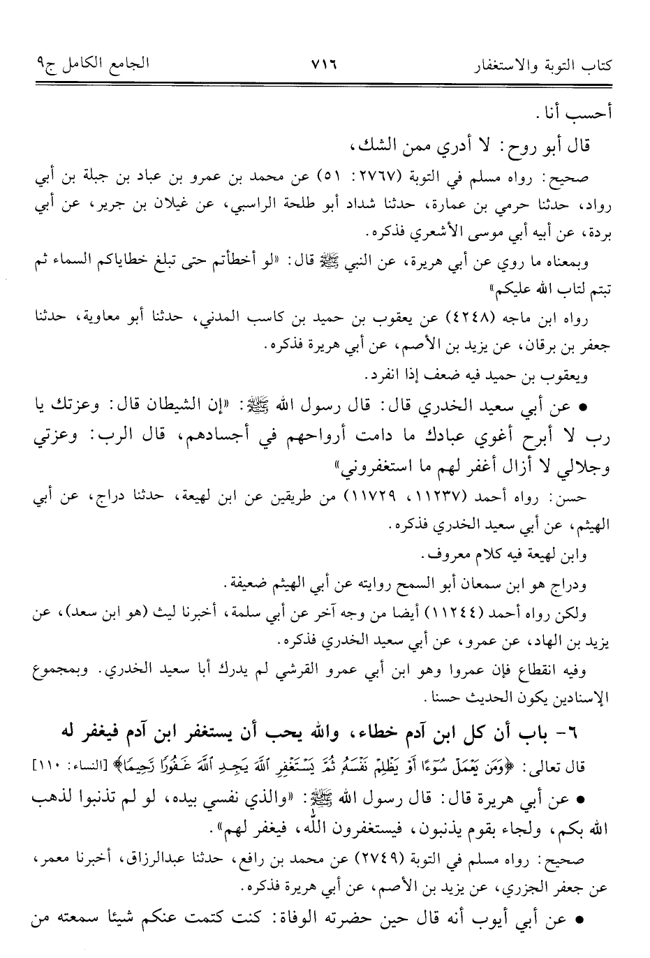 ٦ - باب أن كل ابن آدم خطاء، والله يحب أن يستغفر ابن آدم فيغفر له