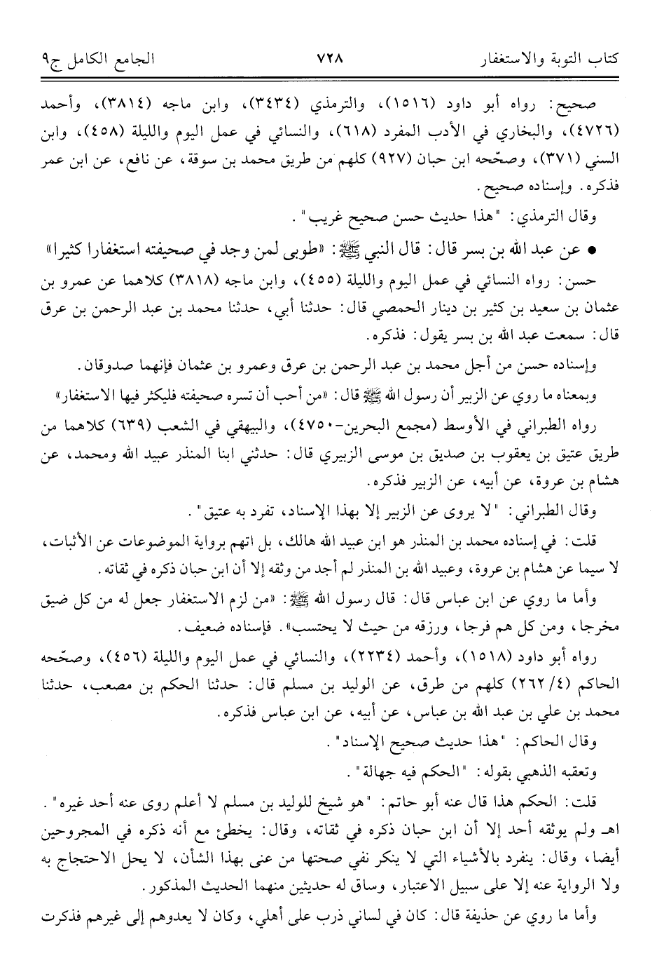 كتاب الجامع الكامل في الحديث الصحيح الشامل المرتب على أبواب الفقه (اسم الجزء: 9)