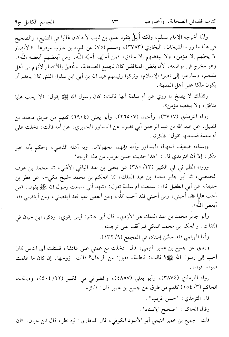 كتاب الجامع الكامل في الحديث الصحيح الشامل المرتب على أبواب الفقه (اسم الجزء: 9)