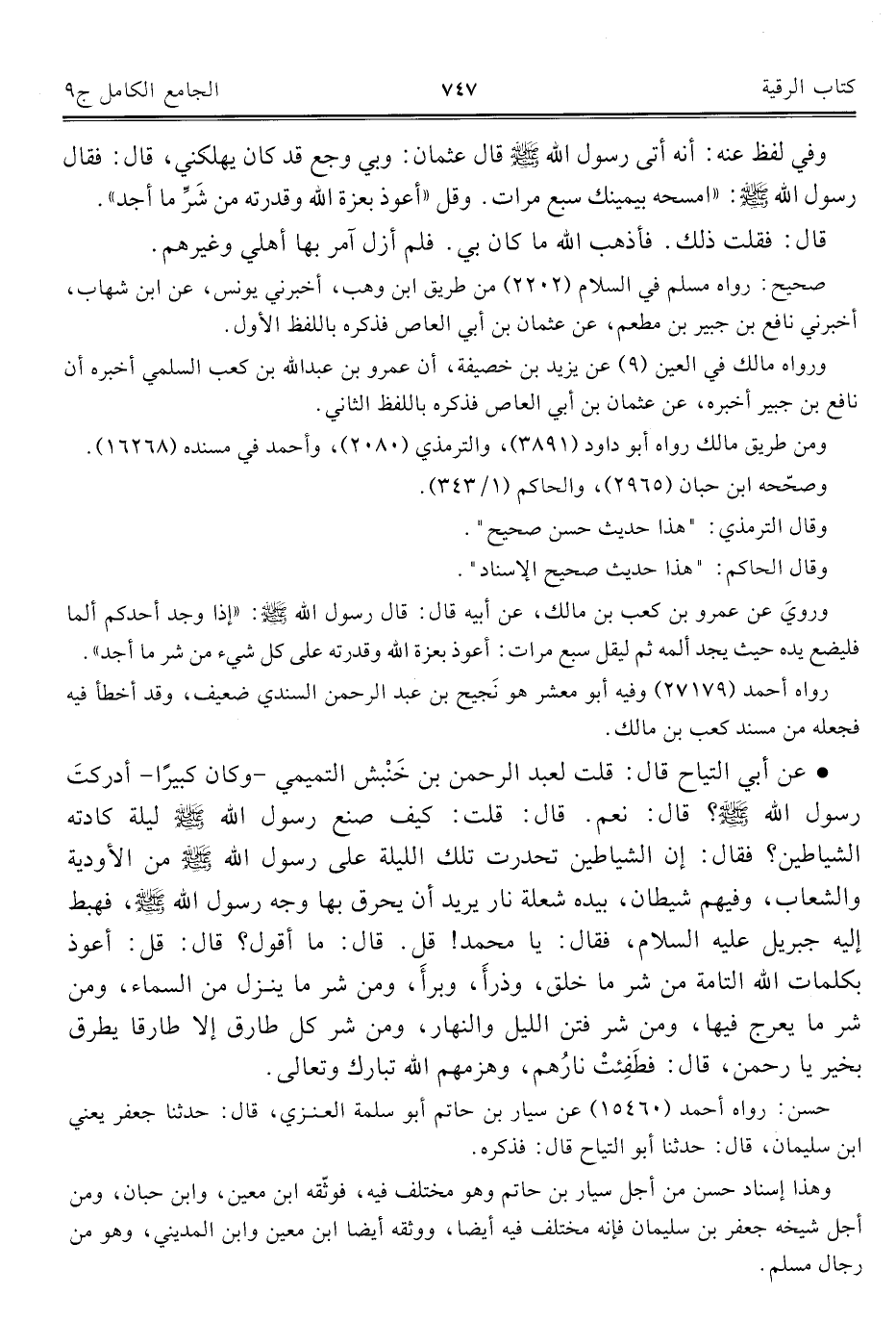 كتاب الجامع الكامل في الحديث الصحيح الشامل المرتب على أبواب الفقه (اسم الجزء: 9)