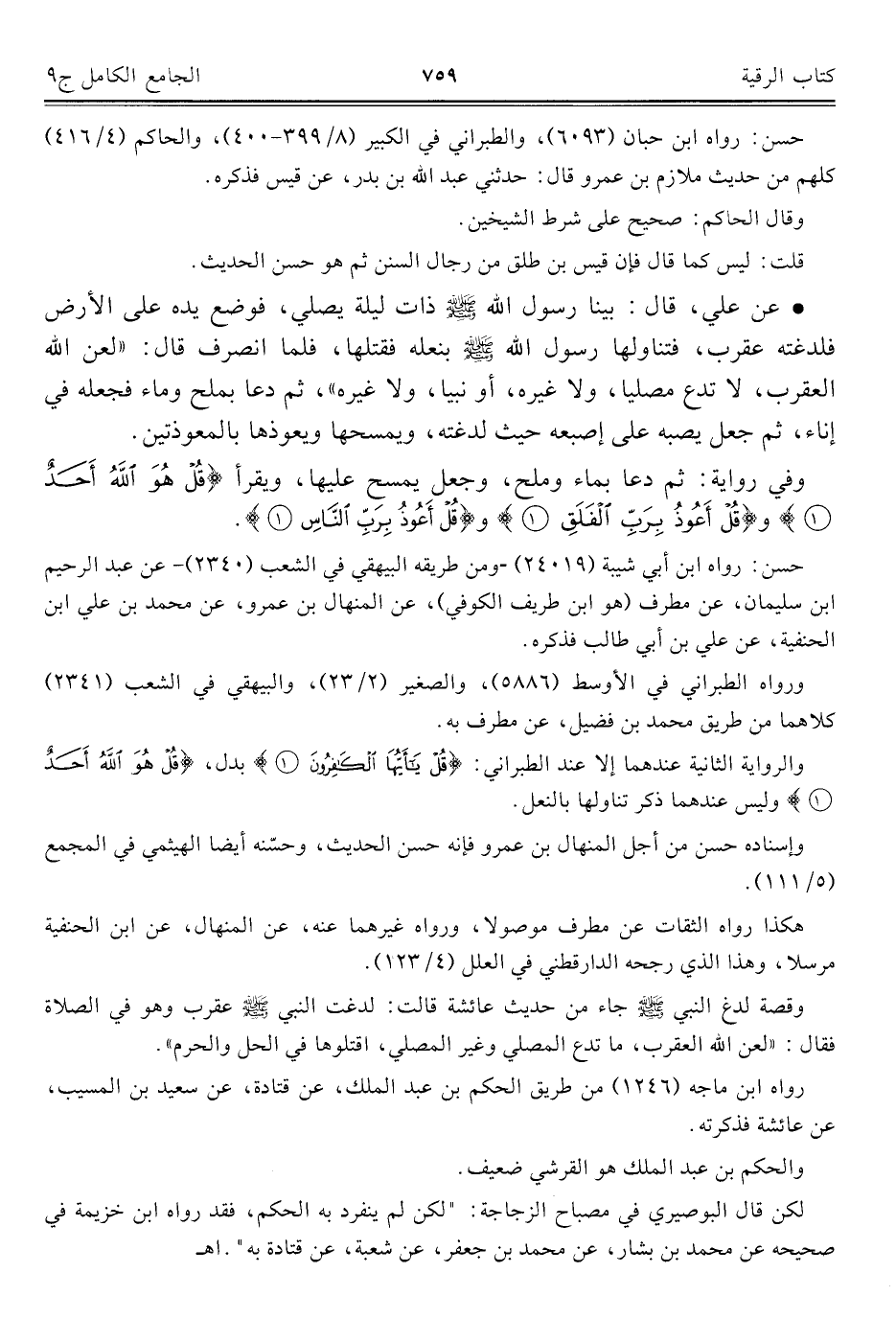 كتاب الجامع الكامل في الحديث الصحيح الشامل المرتب على أبواب الفقه (اسم الجزء: 9)