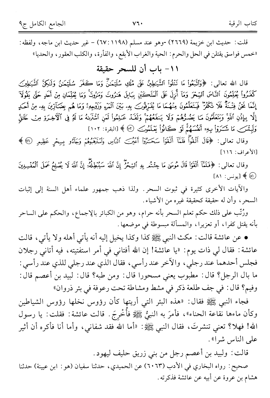كتاب الجامع الكامل في الحديث الصحيح الشامل المرتب على أبواب الفقه (اسم الجزء: 9)