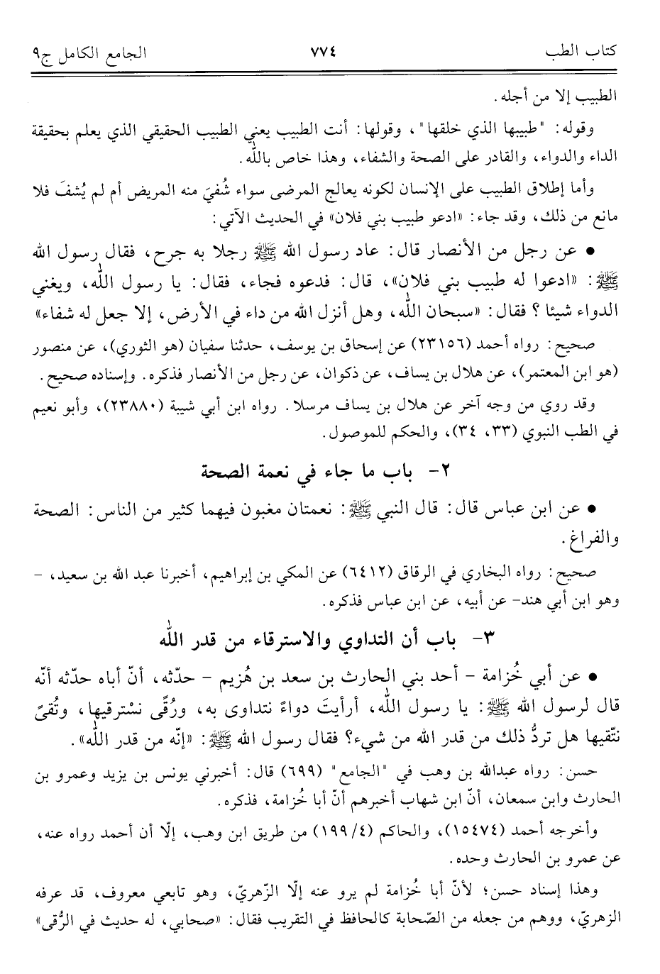كتاب الجامع الكامل في الحديث الصحيح الشامل المرتب على أبواب الفقه (اسم الجزء: 9)
