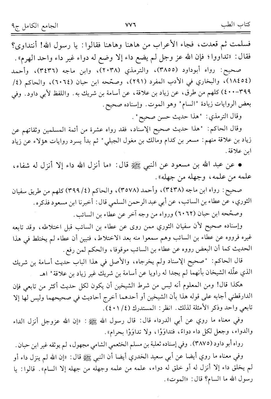 كتاب الجامع الكامل في الحديث الصحيح الشامل المرتب على أبواب الفقه (اسم الجزء: 9)