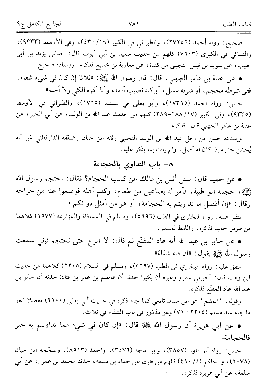 كتاب الجامع الكامل في الحديث الصحيح الشامل المرتب على أبواب الفقه (اسم الجزء: 9)