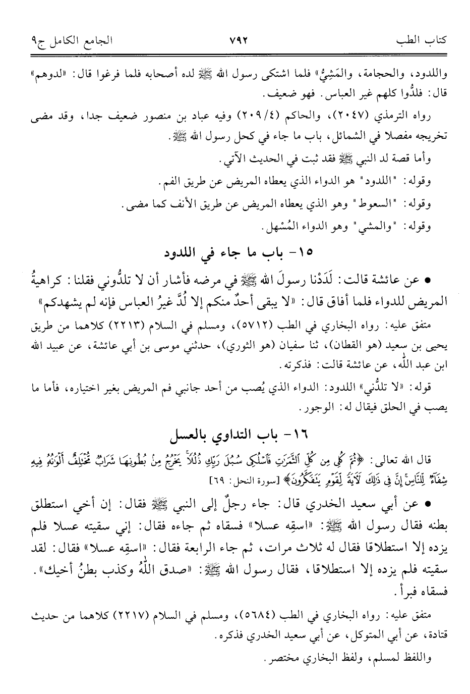 كتاب الجامع الكامل في الحديث الصحيح الشامل المرتب على أبواب الفقه (اسم الجزء: 9)
