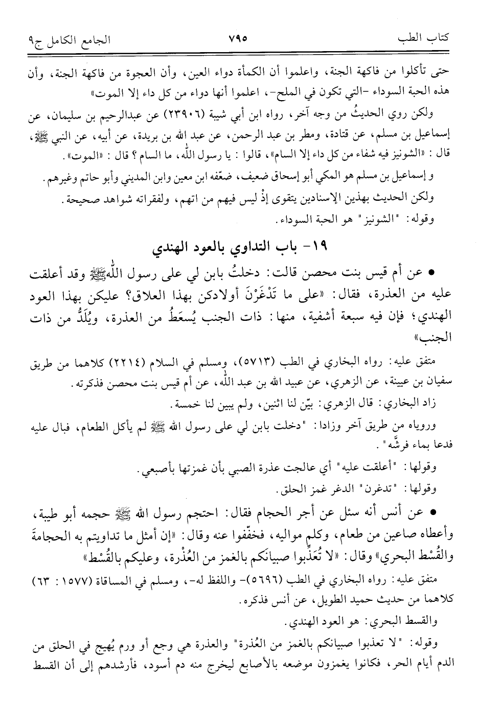 ١٩ - باب التداوي بالعود الهندي