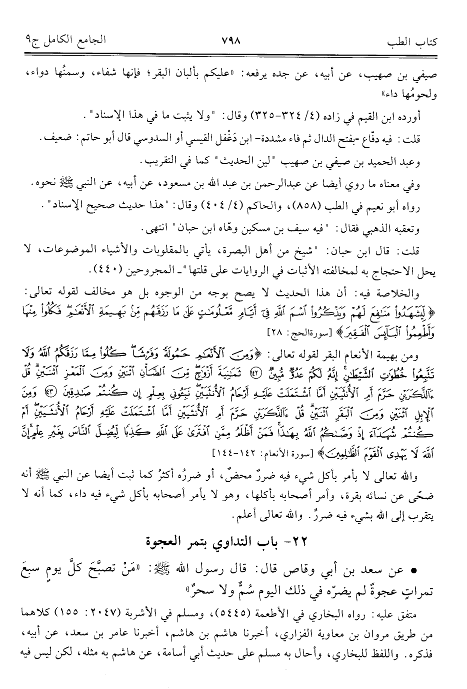 كتاب الجامع الكامل في الحديث الصحيح الشامل المرتب على أبواب الفقه (اسم الجزء: 9)